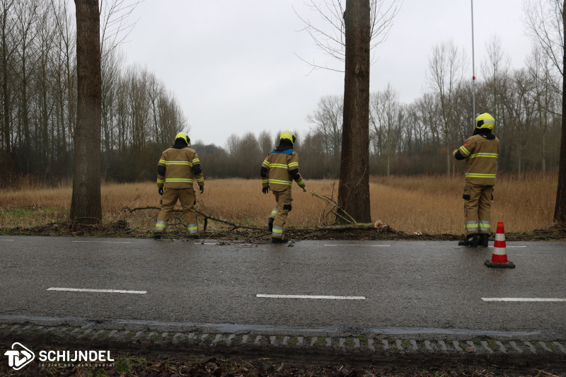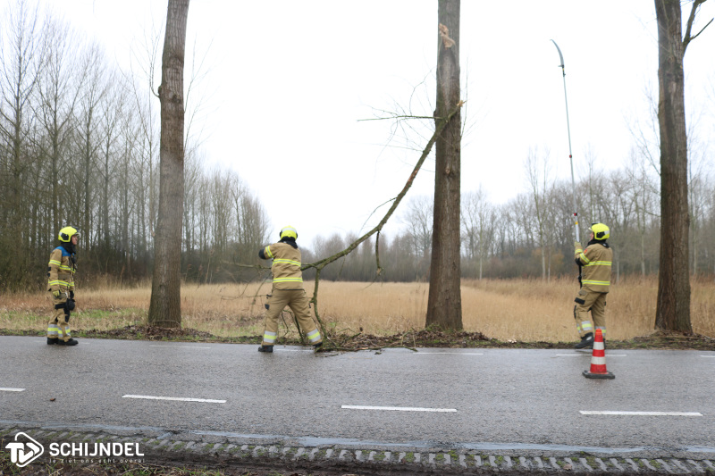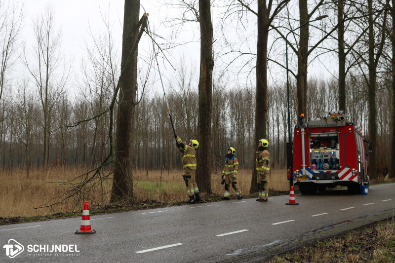 De brandweer zette het voertuig schuin op de rijbaan om een veilige werkomgeving te creëren. Met een zogenoemde stokzaag werd de tak door verschillende lieden losgezaagd van de boom en in de sloot er achter gegooid. Twee brandweermannen regelden ondertussen het verkeer. Na een half uur kon de brandweer retour kazerne.