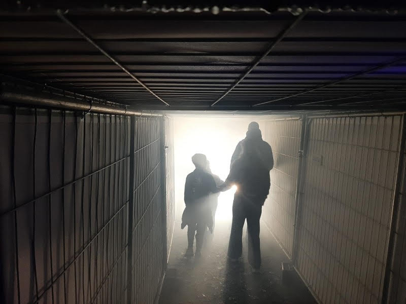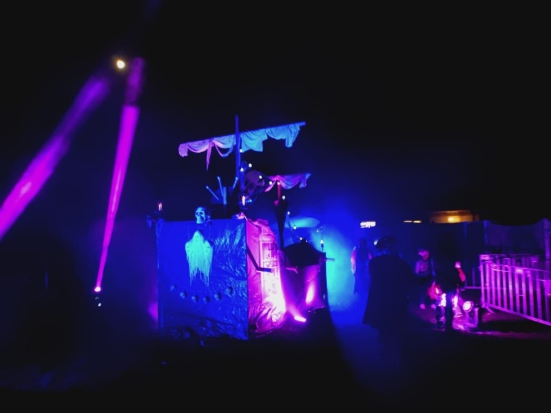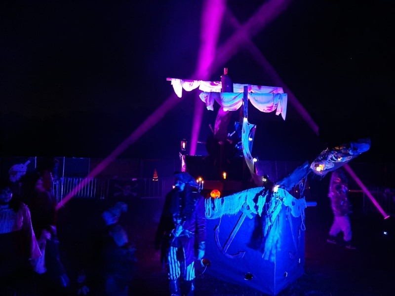 Na het light-uur kwamen de enge spoken echt tot leven...letterlijk! Er werd gegild, gerend, en zelfs een paar volwassen mannen gingen onderuit van schrik. De vele enthousiaste reacties op social media en alle complimenten die de organisatie kreeg, waren voor hen de kroon op maanden voorbereiding en weken opbouw: er werden ongeveer 200 hekken geplaatst om het gangenstelsel op te bouwen. En het pronkstuk van de avond, het piratenschip, is helemaal met de hand gemaakt.