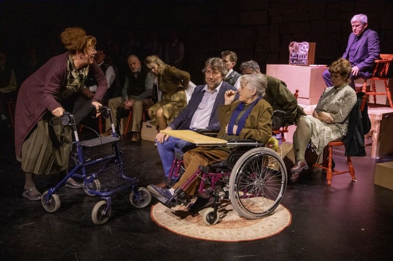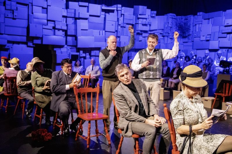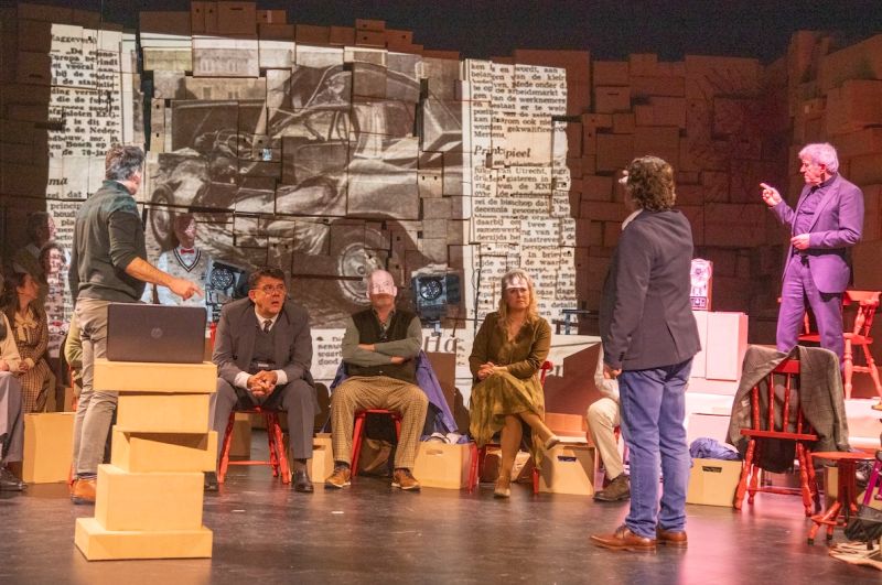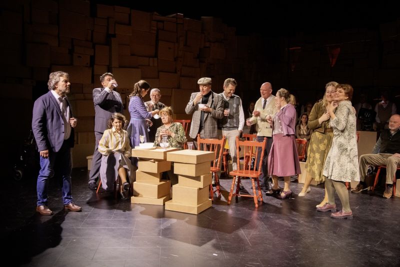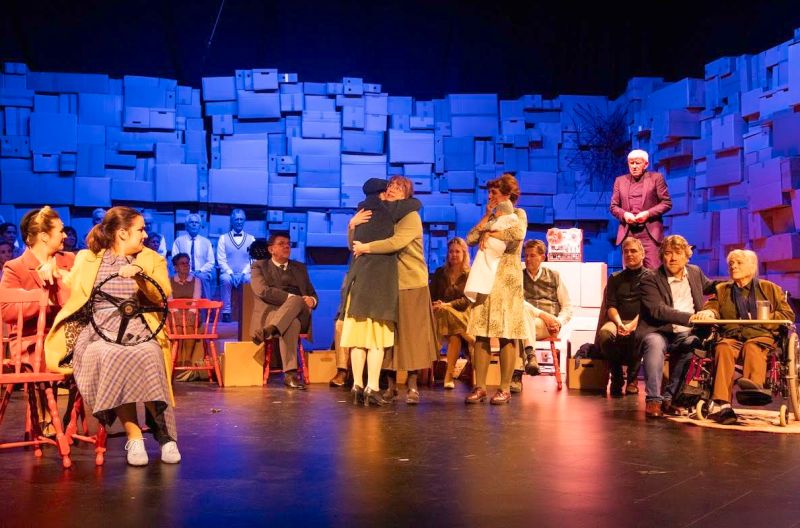 Het is een bijzonder stuk, zeker omdat veel leden van de familie Mathijsen meedoen met de productie. Als speelster (zo zet Maaike Haans een prachtige rol neer als de jonge Mieneke), of in het koor. Ook het decor is opvallend: wanden met dozen, die symbool staan voor de vele herinneringen tijdens het leven. Sommige herinneringen wil je liever opbergen, zoals het ongeluk van Anne..