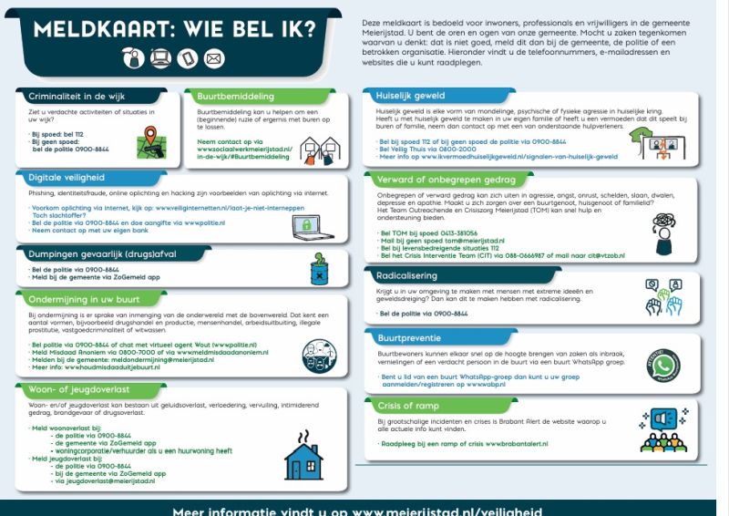 Een handige kaart met een overzicht van alle nummers die u kunt bellen als er iets niet pluis is.
