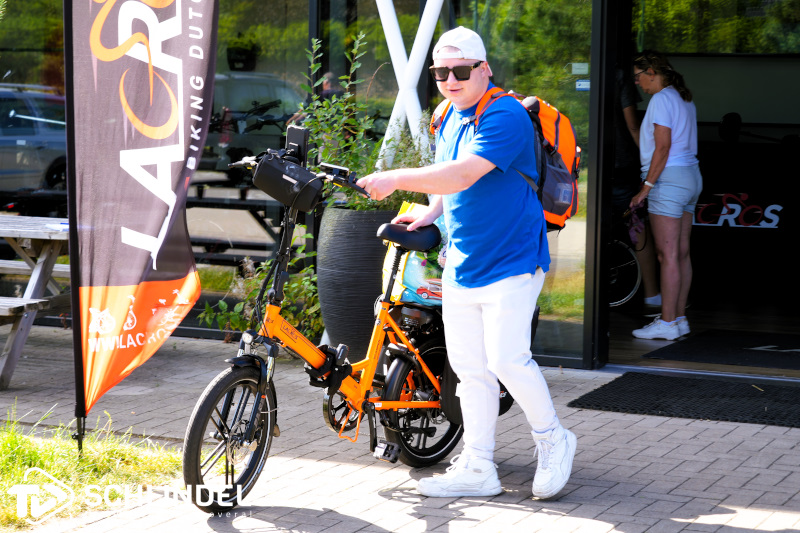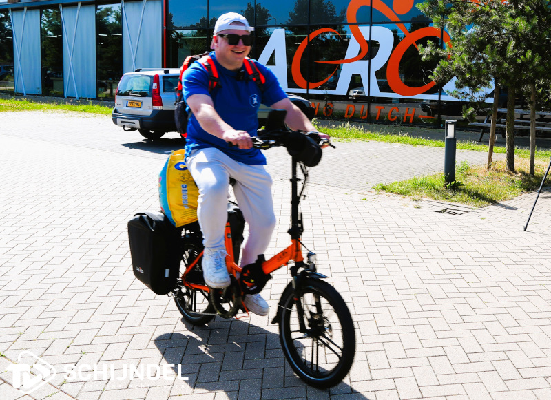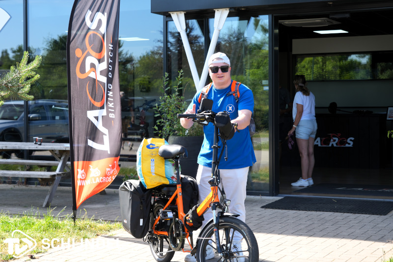 Hij krijgt zijn fiets overhandigd door Jesse Smits van Lacros. Zij sponsoren deze actie omdat ze het een mooi initiatief vinden, een actie van een Schijndels bedrijf voor een Schijndelaar. Hij krijgt de oranje (uiteraard!) fiets aangeboden, en een aantal tips, om er samen wat moois van te maken.