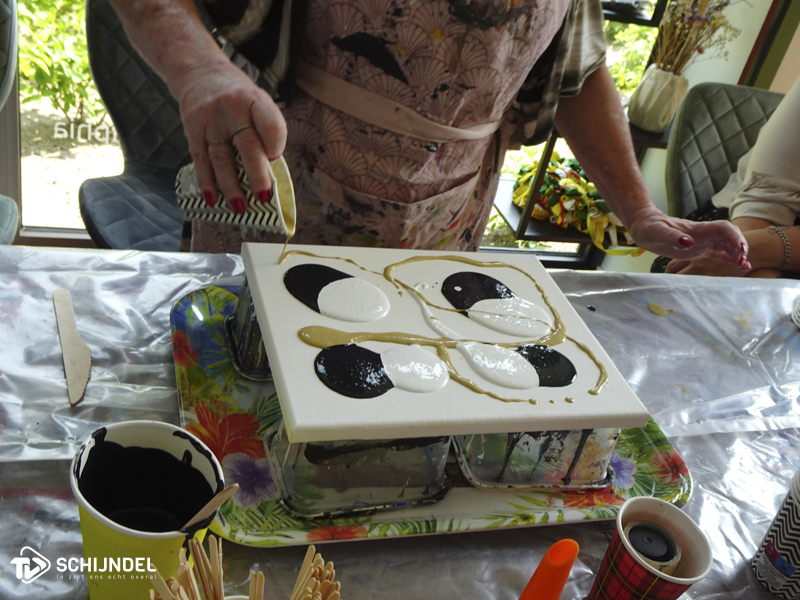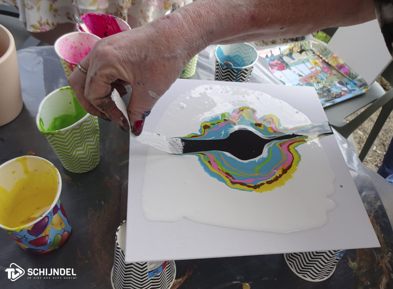 De workshop werd gegeven door Hetty van den Broek in de kapel Boschwegse kerk. Dankzij het mooie weer, hebben de kunstenaars heerlijk buiten gezeten.