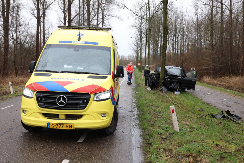 Brandweer, politie en een ambulance kwamen naar de plek van het ongeval. De auto raakte zwaar beschadigd. De boom is door de klap scheef komen te staan. De man heeft op eigen kracht het zwaar gehavende voertuig kunnen verlaten en raakte wonder boven wonder niet gewond.