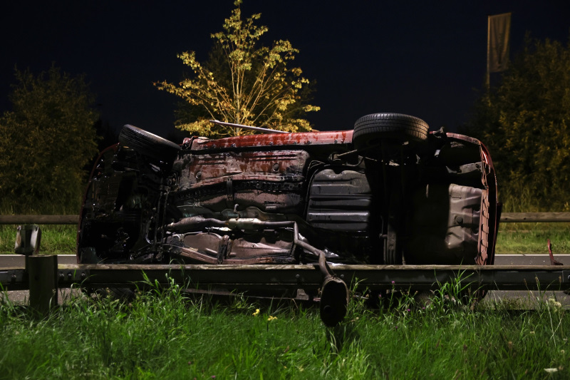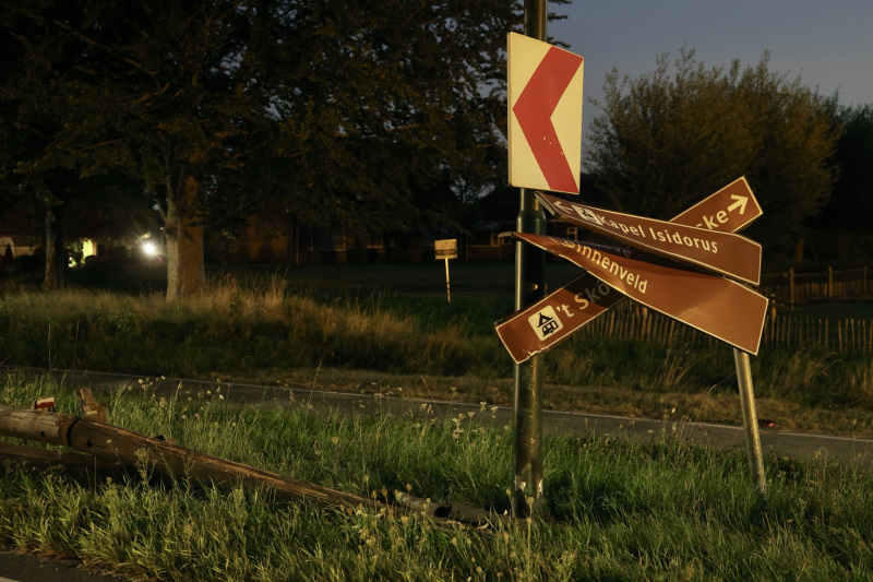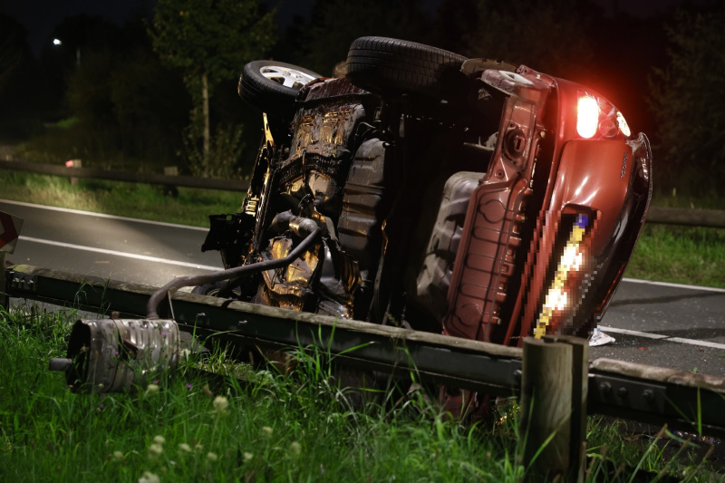 ongevalboxtelsewegSchijndel - Zondagavond rukte de hulpdiensten rond 23.20 uur uit voor een eenzijdig verkeersongeval op de Boxtelseweg (N618) bij Schijndel. Een automobilist raakte met zijn voertuig van de weg, ramde een bord maar werd tegelijkertijd met zijn voertuig gelanceerd door de vangrail. Voordat het voertuig op zijn kant op het wegdek tot stilstand kwam raakte het nog meermaals de vangrail. De auto raakte zwaar gehavend, maar ook de vangrail liep de nodige schade op.