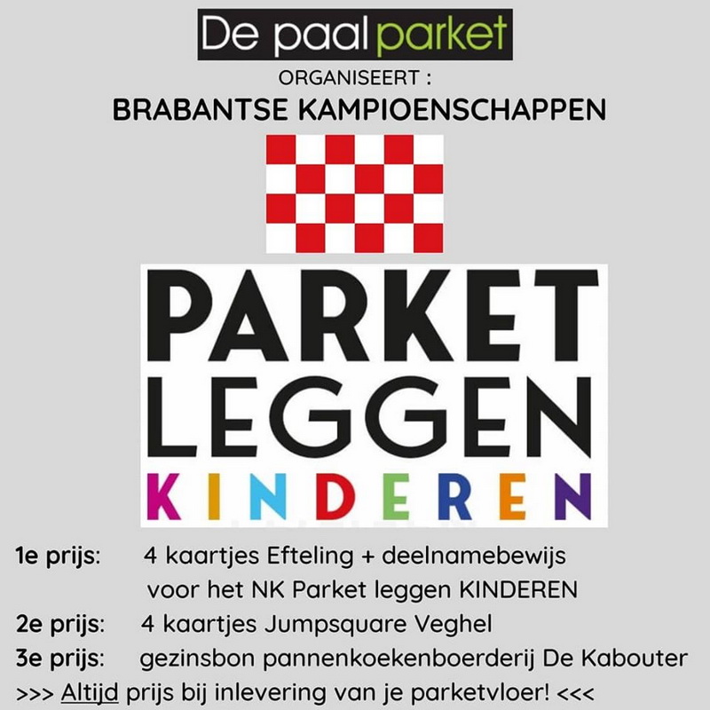 Paalparket brabantsekampioenschappenparketleggen uitsnee 2020Schijndel - De meivakantie is in aantocht voor alle Brabantse kids en die hebben samen met hun ouders heel hard gewerkt aan thuis-school in deze bijzondere tijd. Daarom is het de hoogste tijd voor een creatieve knutselwedstrijd speciaal voor kinderen t/m 12 jaar, zo vindt De Paal Parket uit Schijndel die een oproep op de social media deed. Dit Schijndels bedrijf organiseert namelijk, tijdens de meivakantie, de Brabantse Kampioenschappen parket leggen en jij als deelnemer kunt deze wedstrijd winnen. Het mooie van deze wedstrijd is dat je altijd prijs hebt bij het inleveren van je mini-vloer en de winnaar gaat er vandoor met 4 kaartjes voor de Efteling én een deelname bewijs voor het NK-parket leggen voor kinderen in september. Check de spelregels en suggesties op de facebookpagina van het bedrijf en kom je bouwpakket ophalen morgen zaterdag 18 april tussen 10 en 12 uur of aanstaande maandag 20 april tussen 12 en 14 uur aan de Duinweg 20 in Schijndel. Als je in een reactie laat weten of je mee gaat doen, dan weet het bedrijf ongeveer hoeveel pakketten ze samen kunnen gaan stellen dat bestaat uit een legbord, plankjes en lijm.