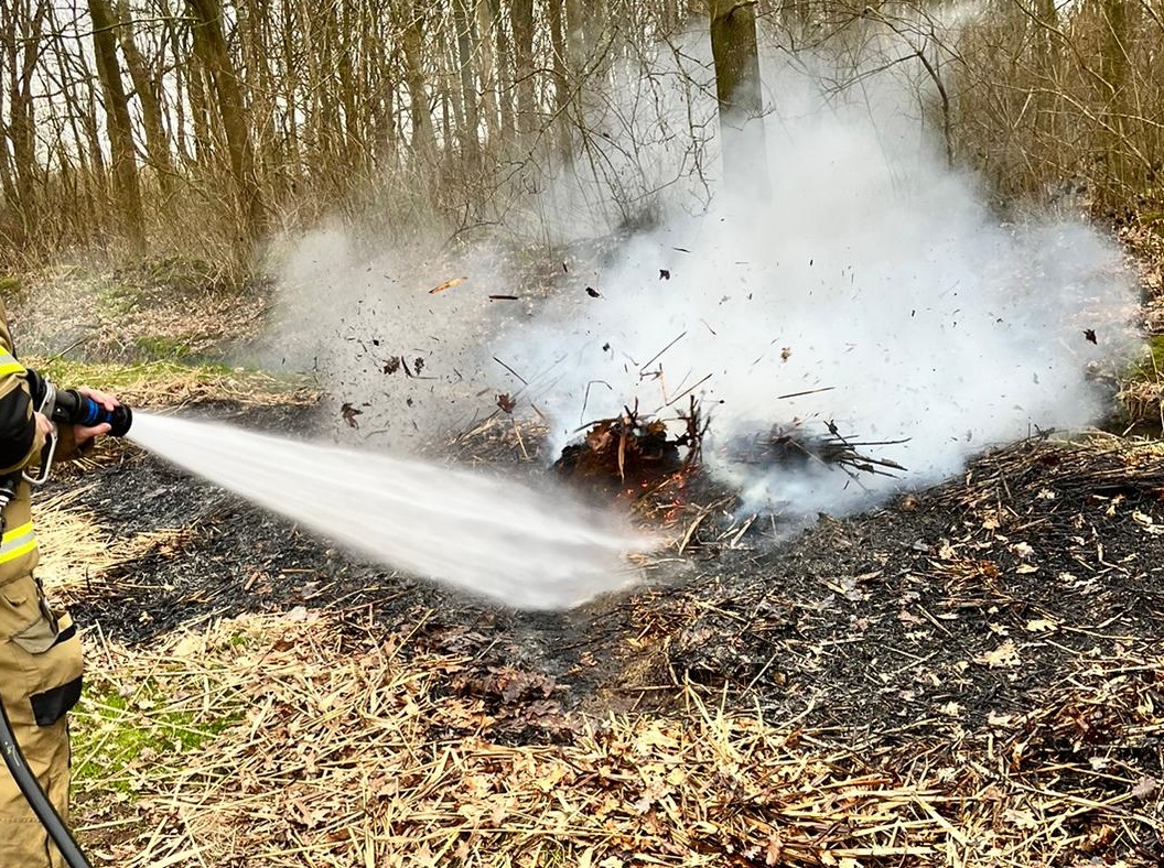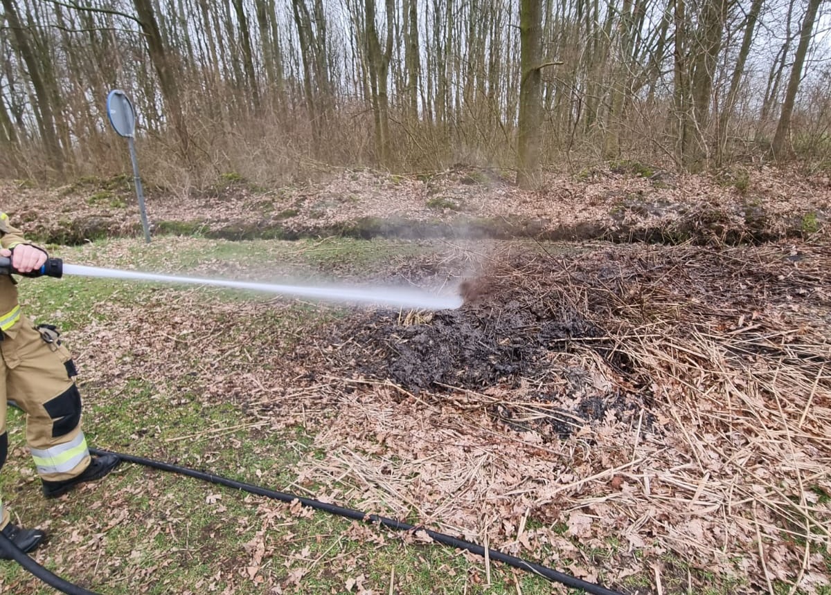De brandweer heeft daarna met rieken de bladeren uit elkaar getrokken en met veel water de boel nageblust. De oorzaak van de brand is niet bekend.