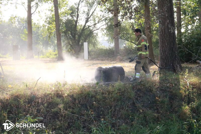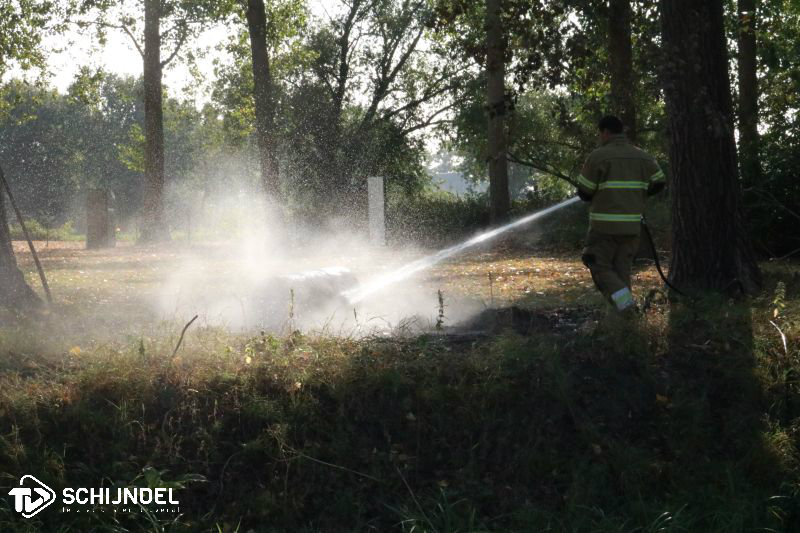 buitenbrandkanaal3Schijndel - De brandweer van Schijndel werd dinsdagmiddag rond half vijf opgeroepen voor een buitenbrand aan de Houterdsedijk. Aan deze weg was echter nergens brand te bekennen. Een fietser sprak op deze weg wel de brandweer aan. De brand bleek uiteindelijk aan de Kanaaldijk-Zuid te zijn. Daar was een hoopje stookafval gaan branden. Een ton lag op de zijkant en rookte ook na. Vermoedelijk is er stoofafval uitgestrooid en is dit weer gaan branden. Na een paar minuten blussen met een straal hogedruk was het vuur uit en werd er voor de zekerheid nog extra nageblust. Enkele foto's onder 'lees meer'.