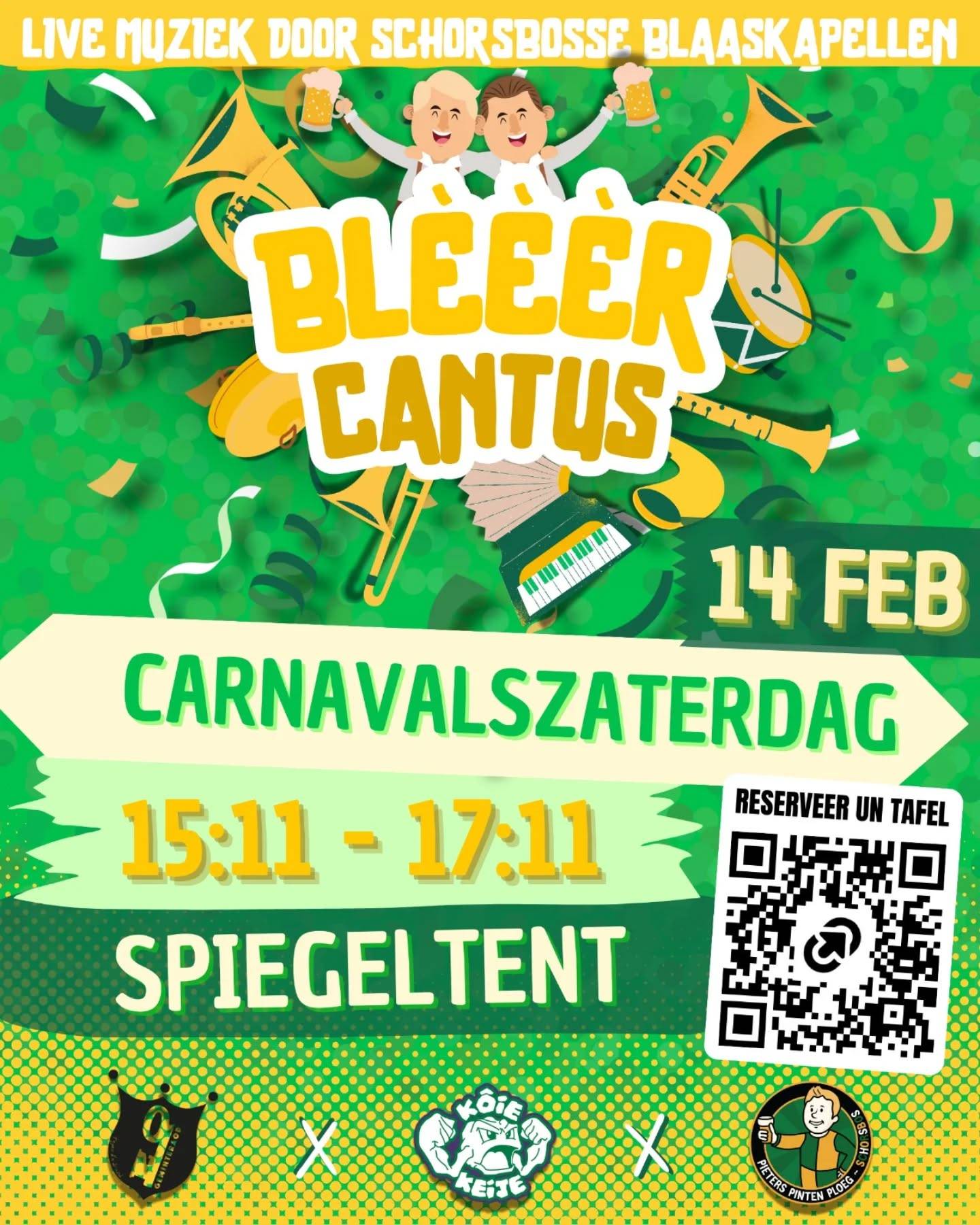 bleercantusklein1Schorsbos - Na het succes van de eerste editie doen we het voor de tweede keer! Kom gezellig meeblèèèren op de leukste carnavalsnummers. Verschillende blaoskapellen komen speule om de sfeer nog gezelliger te maoke.
