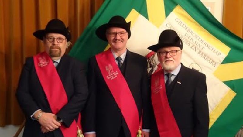 gildekleinSchijndel - Tijdens de algemene jaarvergadering van Gilde Sint Catharina en Barbara Schijndel zijn drie nieuwe gildebroeders geïnstalleerd in de pastorie van de H. Servatiuskerk. Albert Dekker, Jan Goijaerts en Wim van der Schoot zijn de nieuwe gildebroeders van Gilde Sint Catharina en Barbara Schijndel. De drie aspirant-leden zaten in een horecazaak vol spanning te wachten tot het verlossende antwoord kwam. Het toetreden van het Gilde wordt door middel van het bonen bepaald. Ieder gilde-lid krijgt een witte en zwarte boon. Bij een witte boon stemmen de leden vóór, en bij een zwarte boon stemmen de leden tegen. Gelukkig waren alle drie de aspirant-leden positief geboond. Mocht een aspirant-lid een negatieve uitslag hebben, dan brengen de Hoofdman en Dekenschrijver van het Gilde deze persoon traditioneel een stuiver als troost dat deze geen lid mag worden.