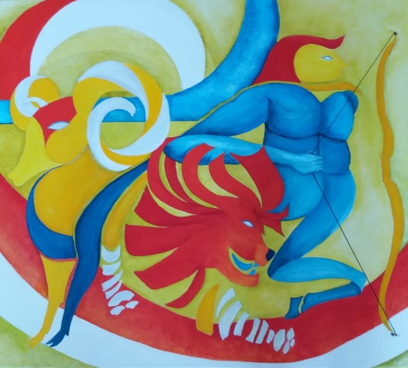 PhoenixCultuuExpositieSchijndel - Tot en met 15 oktober aanstaande is de expositie met het thema ‘Symboliek’ te bewonderen in ’t Spectrum in Schijndel. De werken zijn gemaakt door de schildercursisten van Rita van der Laan, teken- en schilderdocent bij Phoenix Cultuur. De cursisten van Rita hebben het afgelopen voorjaar, in het vorige cursusseizoen, hard gewerkt aan hun schilderwerken in het specifieke thema. Deels tijdens de fysieke lessen in ‘t Spectrum, maar vooral vanuit eigen huis vanwege de toen geldende maatregelen. Via een groepsapp is er onderling contact gehouden en zijn er tips uitgewisseld. Het thema ‘Symboliek’ is op diverse manieren uitgewerkt. Van sterrenbeelden, de vier elementen water, vuur, aarde en lucht, tot de hedendaagse symboliek zoals het hart en kleurgebruik.