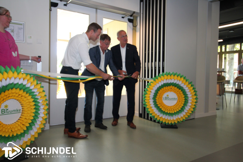 Schijndel - Wijkcentrum 't Bluumke werd afgelopen vrijdag feestelijk geopend. Het wijkcentrum is sinds 10 juni in gebruik. Voorzitter Bart Eijkemans, wethouder Goijaarts en directeur Woonmeij Mark Wonders verzorgden de opening.