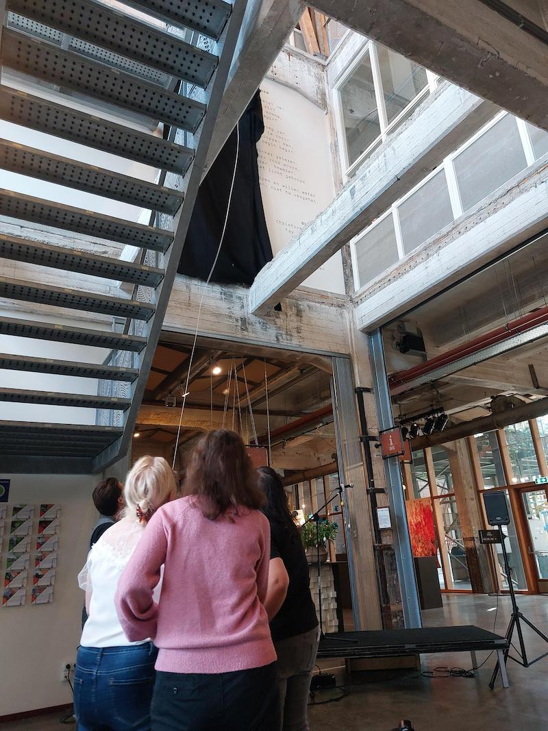 onthullinggedicht1Meierijstad - Samen met stadsdichter Rick Terwindt hebben ervaringsdeskundigen Christina Nazier, Fay Kortleven, Soco Garcia en José Kempe, een gedicht voor en door laaggeletterden geschreven. Dat gedicht onthulden zij vandaag, samen met wethouder Coby van der Pas, in de Cultuur Haven Veghel. Zij willen dit gedicht verspreiden in Meierijstad, onder andere door het te laten zien op een ‘eigen’ muur. Daarmee brengen ze het thema ‘laaggeletterdheid’ blijvend onder de aandacht.