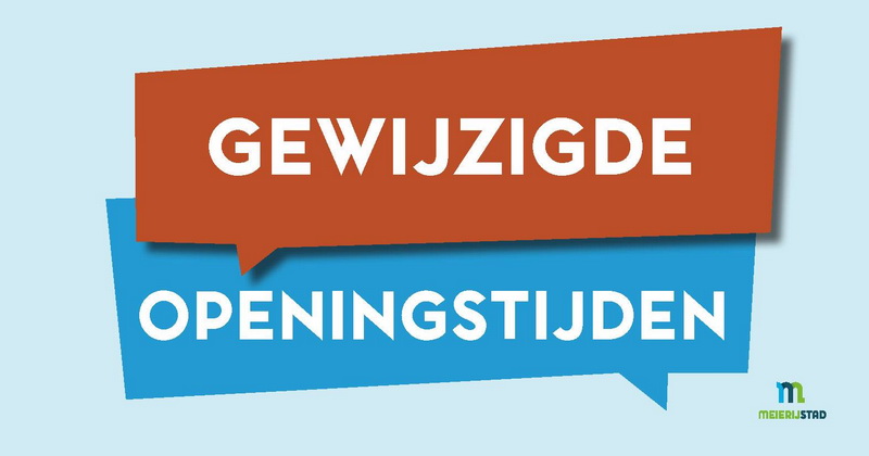 Gewijzigdeopeningstijden brongemmeierijstad 14042020Meierijstad - De dienstverleningscentra in Sint-Oedenrode en Schijndel waren vooralsnog tot en met 10 april jl. gesloten zoals eind maart bekend was gemaakt. De periode is nu verlengd tot en met 28 april en de loketten in Sint-Oedenrode en Schijndel zijn dus voor publiek gesloten in verband met de maatregelen rondom het coronavirus. De gemeentelijke dienstverlening gaat wel door. In Veghel kunt u terecht bij de balies voor burgerzaken van maandag t/m vrijdag van 8.30 tot 12.30 uur. Voor het inloopspreekuur sociaal domein  kunt u terecht op maandag t/m vrijdag van 9.00 tot 12.00 uur. Voor bijzondere situaties neemt u telefonisch contact op met de gemeente Meierijstad via 140413. De gemeentemedewerkers proberen dan maatwerk toe te passen. Een overzicht van alle openingstijden vindt u op de gemeentelijke website. Daar vindt u ook een link naar de openingstijden van de drie milieustraten.
