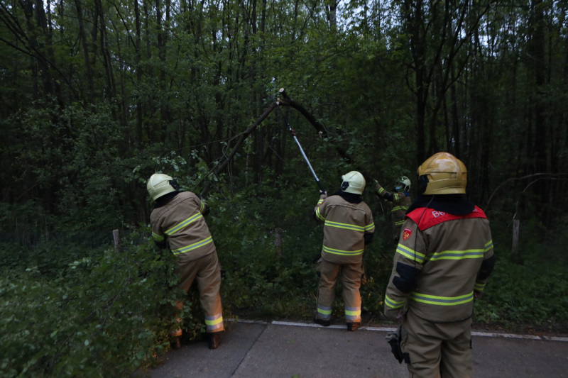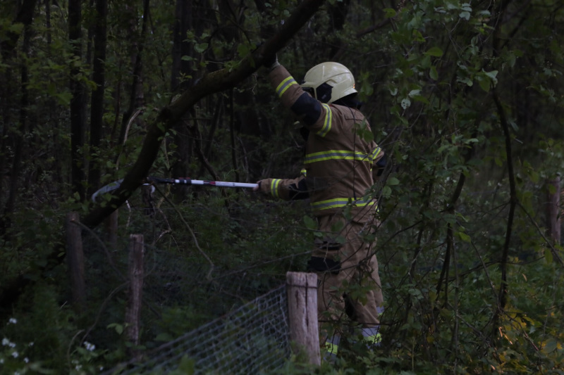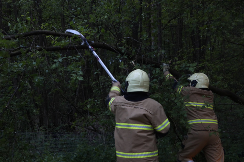 takfietspad4Schijndel - Vrijdagnacht werd de brandweer rond 5.30 uur gealarmeerd voor een omgewaaide boom op het Achterste Hermalen in Schijndel. Toen de brandweer in die straat niets aantrof maar wel bekend was dat de grote tak over het fietspad bij een hondenvereniging lag, werd de link snel gelegd. De brandweer verplaatste zich naar de Schijndelsedijk (N618) tussen Boxtel en Schijndel waar ter hoogte van hondenvereniging ‘The Black Dogs’ de grote tak werd aangetroffen. Met behulp van een stokzaag werd de tak in stukken gezaagd en in de berm gelegd, waarna het fietspad weer vrij was. De harde windstoten hebben afgelopen avond en nacht op vele plaatsen in de omgeving schade aangericht, de brandweer rukte meermaals uit voor soortgelijke meldingen.