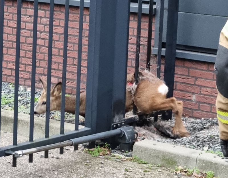 herthekSchijndel - Rond half tien vanochtend werd de brandweer van Schijndel opgeroepen naar de Nobelweg voor een dier in nood. Ter plaatse bleek bij een bedrijf een hertje klem te zitten in het hekwerk.