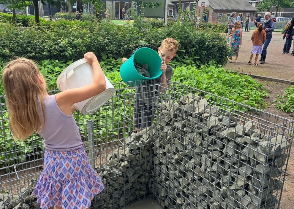 Wat zich woensdagmiddag afspeelde, was een prachtig voorbeeld van deze brug naar de toekomst. Maar liefst 750 kilogram breukstenen moest in de schanskorven geplaatst worden, en tot ieders verrassing begonnen de kinderen, samen met enkele aanwezige ouders, spontaan te helpen. In een mum van tijd werkten ze gezamenlijk om de stenen in de korven te gooien, waarbij ze letterlijk en figuurlijk hun steentje bijdroegen aan dit belangrijke project.