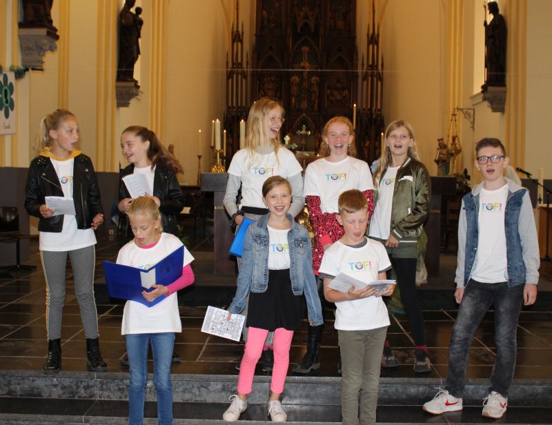 kinderkoortof12Schijndel - Bijna 30 communicantjes hebben afgelopen weekend hun 1 e Heilige Communie gedaan in de H. Servatiuskerk in Schijndel. Kinderkoor ToF! zong in de prachtige feestelijke vieringen. De communicantjes hadden van te voren al enkele malen geoefend met de dirigente en zongen al heel veel refreinen mee. Vind jij zingen ook zo ToF en wil je wel eens mee komen doen? Dat kan op vrijdag 2, 9, 16 en 30 oktober. Kinderkoor ToF! zingt tijdens gezinsvieringen, doopdankviering en kerst.