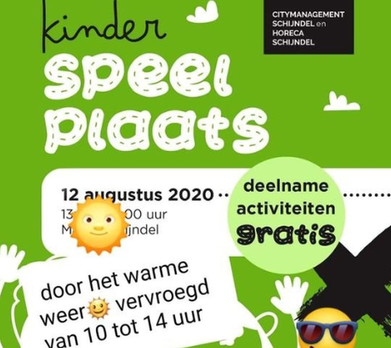kinderspeelplaatsSchijndel - De kinderspeelplaats die het Citymanagement Schijndel samen met InSchijndel, horecagelegenheden en winkeliers organiseert op woensdag 12 augustus wordt in verband met de te verwachten hitte vervroegd. De aanvangstijd is nu 10.00 uur en het zal duren tot 14.00 uur.