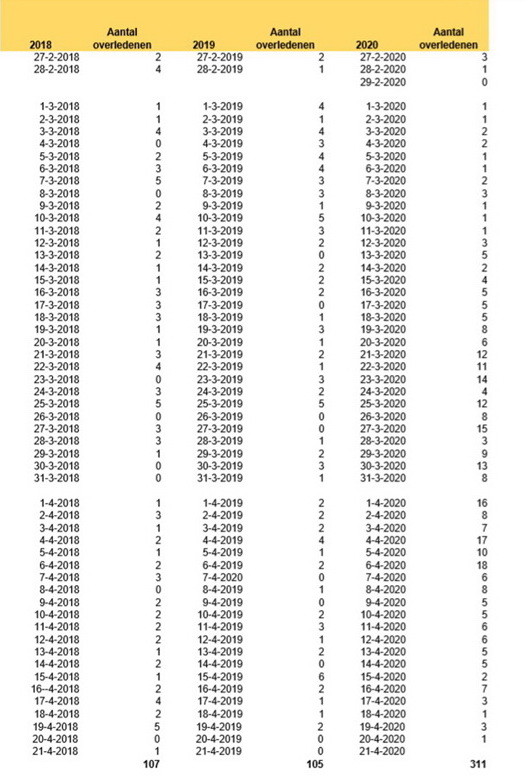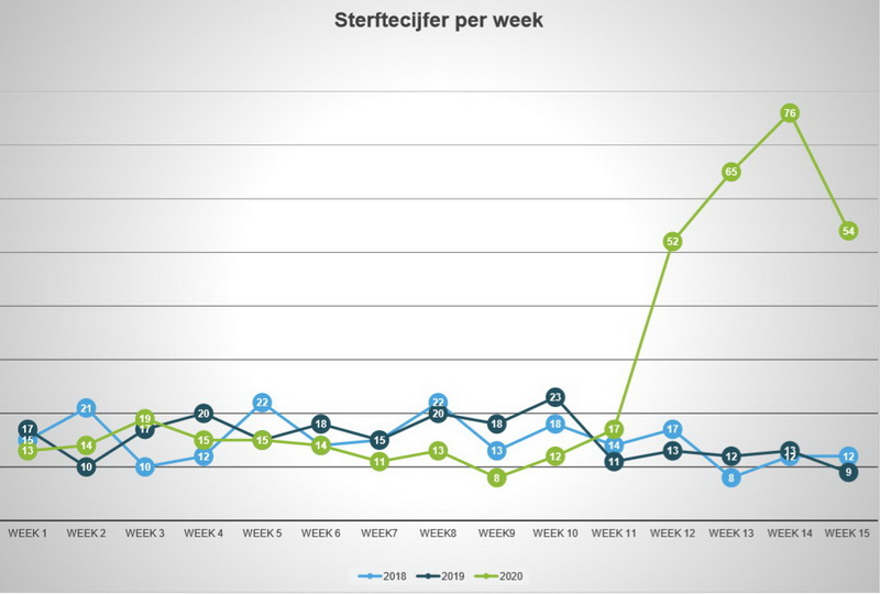 De hieronder bijgevoegde grafiek geeft aan dat in deze week de sterftecijfersituatie vergelijkbaar is zoals deze in week 12 bekend waren. De tot nu toe hoogste piek in week 14 is in de grafiek duidelijk zichtbaar. Middels deze raadsinformatiebrief wil de gemeente ook de graag de burgers voorzien van de laatste ontwikkelingen.