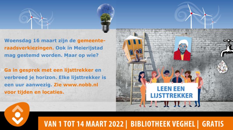 leeneenlijsttrekkerSchijndel - In de aanloop naar de gemeenteraadsverkiezingen op woensdag 16 maart kun je bij Bibliotheek Meierijstad een lijsttrekker lenen. Niet echt natuurlijk, maar in plaats van het lenen van een gewoon boek, mag je in de Bibliotheek aan tafel met het gezicht van een van de deelnemende partijen. Je mag de lijsttrekker niet mee naar huis nemen, maar je moet er wel voorzichtig mee zijn. Net als bij een echt boek. Op deze manier brengt de Bibliotheek mensen letterlijk met elkaar in gesprek en draagt hierbij aan verbinding en meer wederzijds begrip. Want of het nu gaat om windmolens of problemen in de zorg; wie luistert naar elkaar komt een stuk verder.