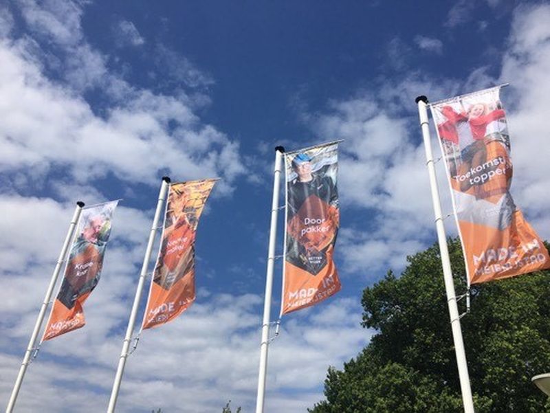 banierenmeierijstadMeierijstad - Meierijstad kleurt oranje; Nieuwe banieren sieren voortaan de belangrijke invalswegen van de drie grootste kernen in Meierijstad. Het zijn permanente uitingen van ‘Made in Meierijstad’. Dat is de eerder gestarte campagne waarin Meierijstad zichzelf op de kaart zet op onder meer de thema’s food, cultuur en ondernemerschap. Vandaag werd het eerste exemplaar geplaatst aan de Corridor in Veghel. In totaal worden er 52 banieren geplaatst; 7 meter hoge vlaggenmasten in sets van 4 aan weerszijde van belangrijke in-en uitgangswegen. De locaties zijn strategisch gekozen in het zicht van de vele passanten.