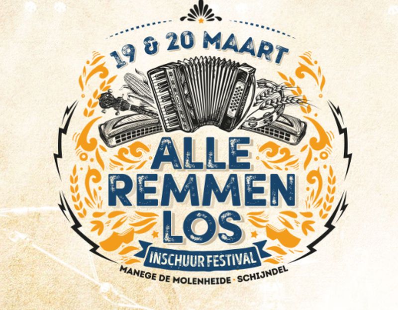 alleremmenlosSchijndel - Nieuwe datum voor 2e editie van 'Alle remmen los inschuur': zaterdag 19 en zondag 20 maart in manege de Molenheide in Schijndel. Met o.a. Rowwen Hèze, BZB, Mooi Wark, WC Experience, Pater Moeskroen, De Paloma’s e.v.a. Ticketverkoop start a.s. donderdag 3 maart om 11.00 uur via www.alleremmenlosinschuur.nl. Let op: er is nog slechts een handjevol tickets beschikbaar. Na de zeer succesvolle uitverkochte 1e editie van indoor festival Alle Remmen Los Inschuur in november 2019 zou op zaterdag 20 en zondag 21 november 2021 de 2e editie plaatsvinden, wederom in Manege De Molenheide in Schijndel. Althans, dat was het plan. Maar corona stak daar echter een stokje voor. Maar niet getreurd, want op zaterdag 19 maart en zondag 20 maart a.s. gaat alsnog de voet op het gaspedaal, de biertaps vol open en de volumeknop op standje 10.