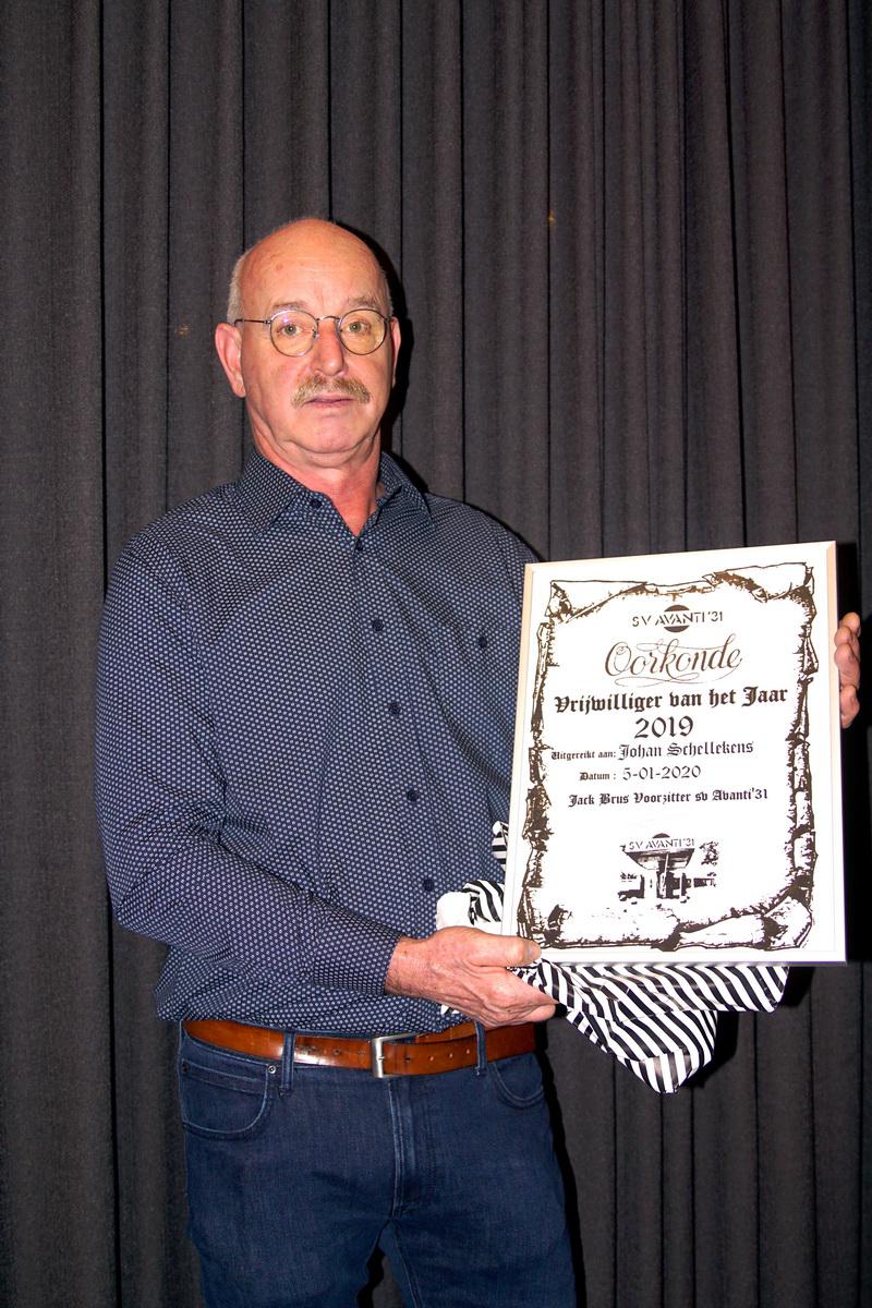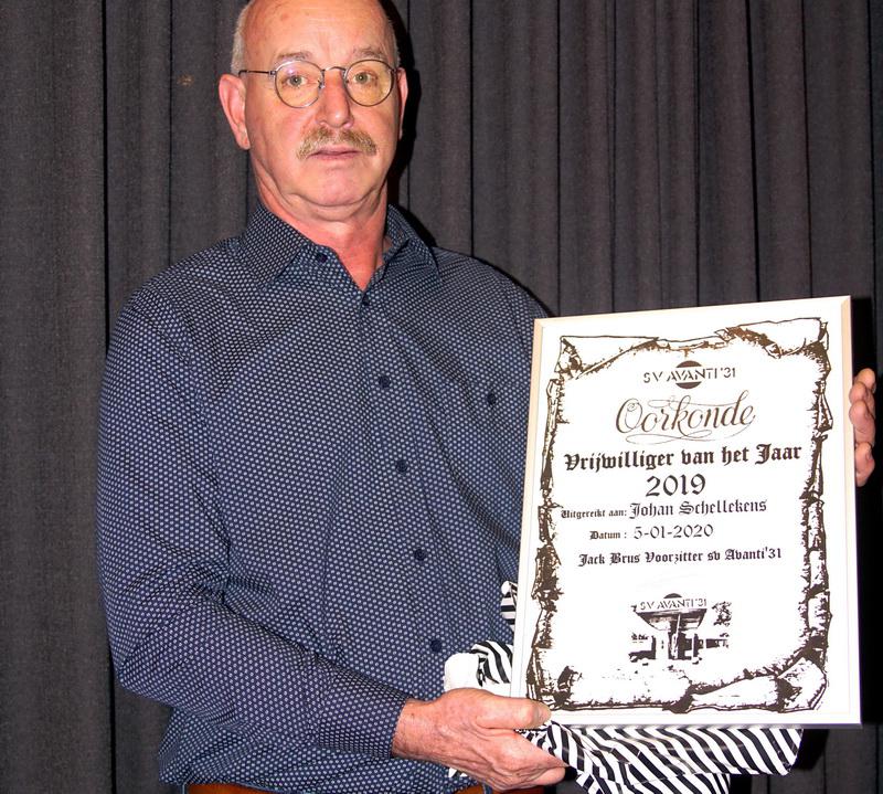 Onder luid applaus van de aanwezigen werd Johan Schellekens vervolgens uitgeroepen tot 'Vrijwilliger van het jaar' en ontving hij uit handen van Jack Brus het bijbehorende ingelijste diploma en een dinerbon.