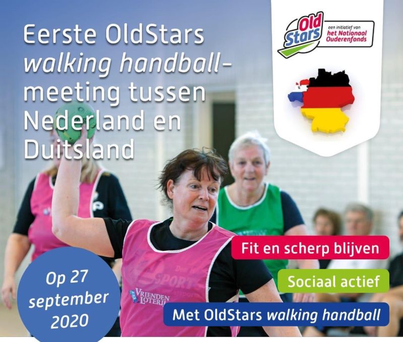 walkinghandbal2Schijndel - Het OldStars Sport aanbod groeit en wordt steeds populairder in het land. Ook in Schijndel/Meierijstad zijn er maar liefst 4 OldStars sportvormen het afgelopen jaar opgestart. Ook bij onze Oosterburen is er vraag naar OldStars. Inmiddels zijn de eerste Duitse initiatieven opgestart met OldStars walking handball. Het Nationaal Ouderenfonds, NHV, Hellas Handbal, Tus Hertha Hetzerath en het Schijndelse HV Zephyr hebben daarom het initiatief genomen om een uitwisseling te organiseren tussen Nederlandse Walking Handballers en Duitse Walking Handballers. Dit vindt plaats op zondag 27 september 2020 in sporthal Dioscuren Bunderstraat 6B te Schijndel.