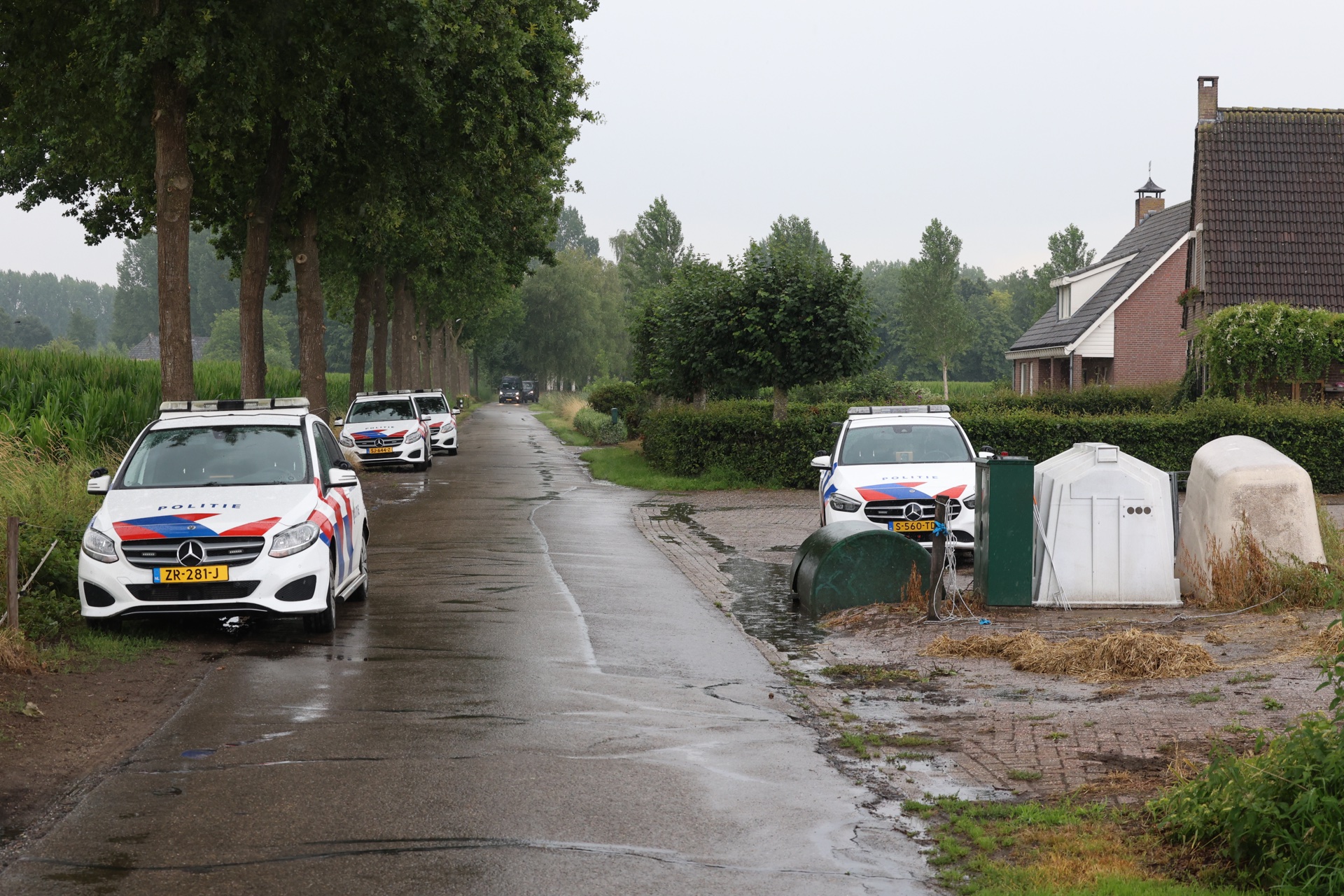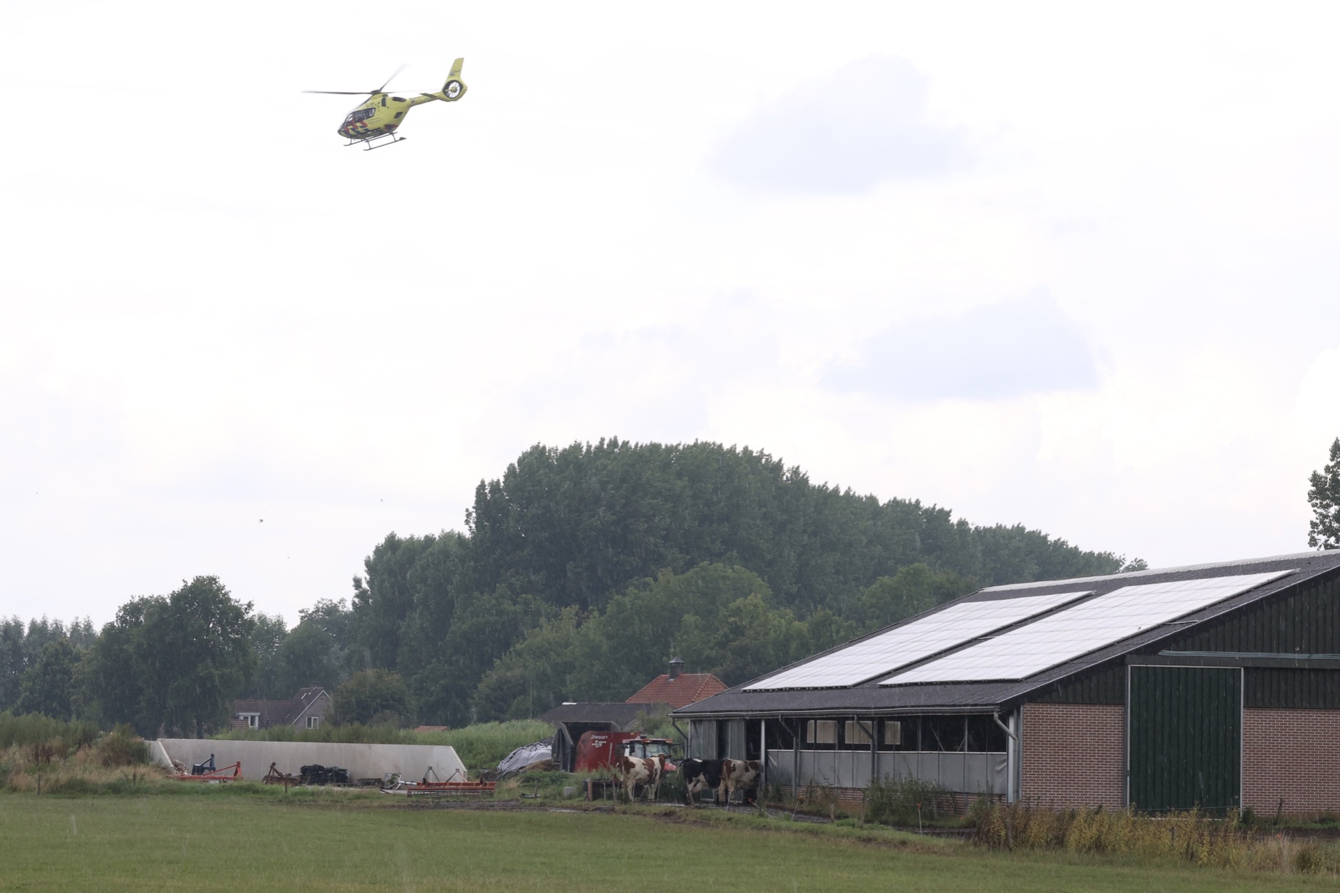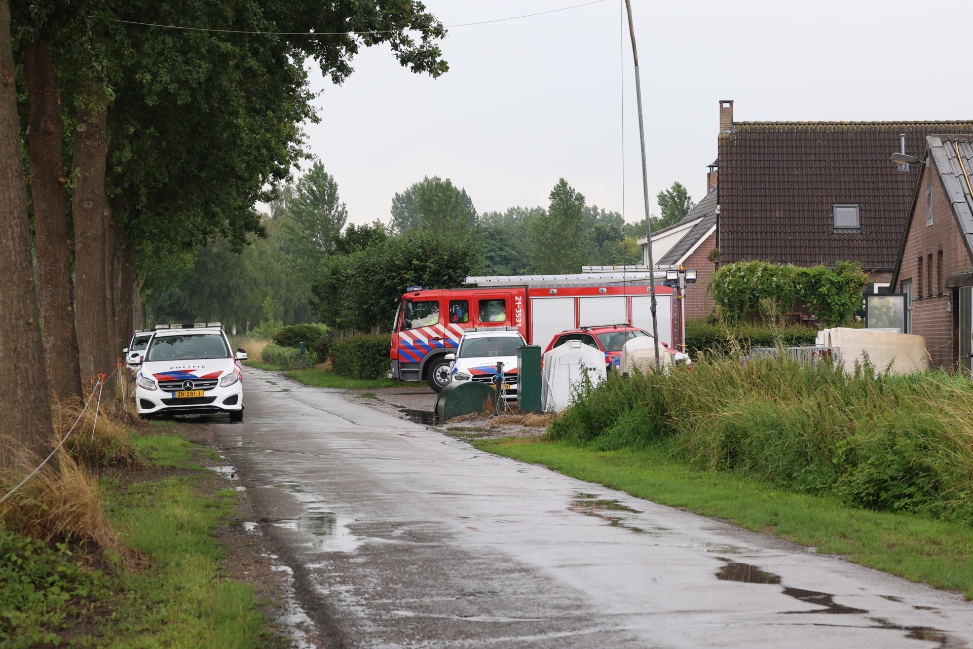 Rond 14.45 uur rukten de hulpdiensten massaal. Een traumahelikopter landde in een weiland tegenover het boerenbedrijf. Ook meerdere politie-eenheden, de brandweer met twee voertuigen en een ambulance spoedden zich het terrein op. Info en foto's: Persburo Sander van Gils