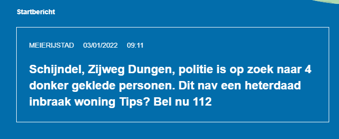 helizoekactie1Schijndel - De politie zocht vanochtend met een politiehelikopter naar inbrekers in verschillende weilanden rondom Zijweg Dungen. Rond negen uur werden vier personen op heterdaad betrapt bij een inbraak. De personen gingen er vandoor. Meerdere politiewagens hebben de weilanden rondom de weg afgezet en een politiehelikopter keek mee vanuit de lucht. De politie deelde via Burgernet een oproep om uit te kijken naar vier 'in het donker geklede' personen. Heeft u tips? Bel dan 112. De politie liet rond kwart over tien weten de personen nog niet gevonden te hebben en doet verder onderzoek.