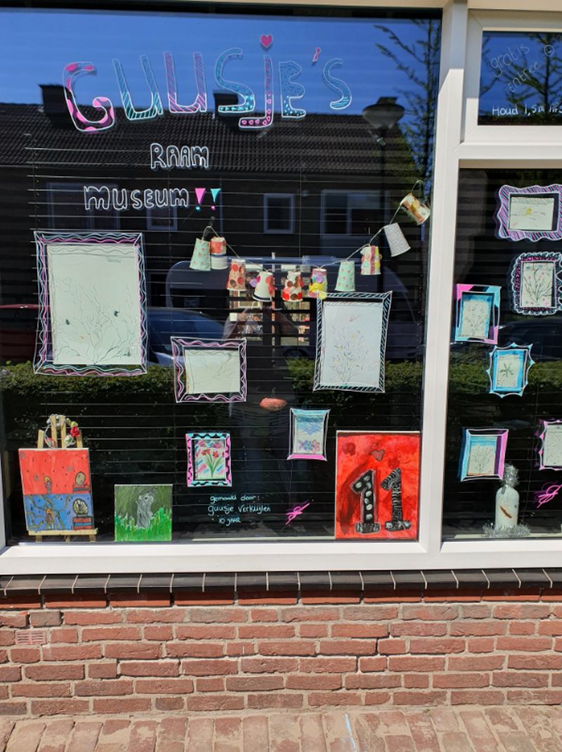 raammuseum2Schijndel - Het blijkt telkens weer: corona maakt mensen creatief. Zo is er op dit moment aan de Hertog Jan II-laan in Schijndel een raammuseum te bekijken, waarin kunst hangt die gemaakt is door de 10-jarige Guusje Verkuijlen. Mensen kunnen hier op gepaste afstand van 1,5 m naar haar zelfgemaakte kunst kijken. Ook hangen er schrijfblokken, waarin men een recensie kan plaatsen. Men is van harte welkom om dit museum te komen bekijken.