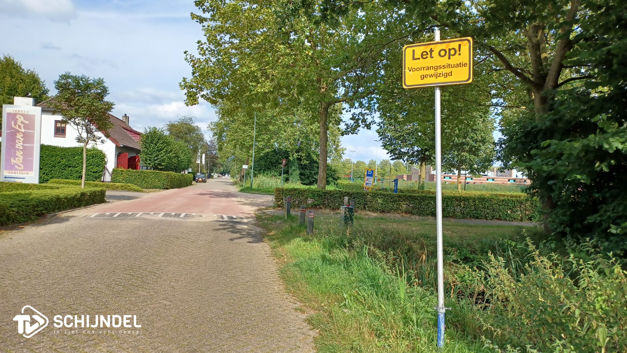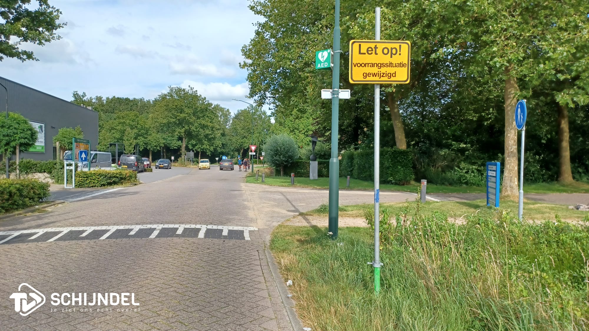 Ook verkeer dat vanaf de parkeerplaats bij de sport- en hockeyvelden komt, heeft voortaan voorrang. De gemeente waarschuwt ook hier met (gele) bordjes voor de aanpassing.Echter is bij deze kruising het verkeersbord wat waarschuwt voor haaientanden/stoppen nog niet weggehaald, wat vanavond al enkele keren tot spannende verkeersituaties leidde.