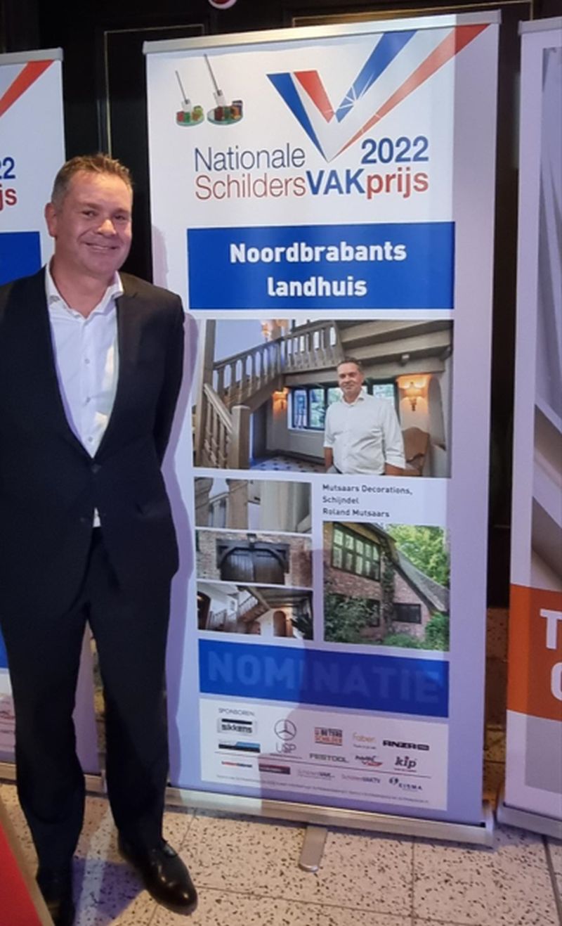 De jury koos in de categorie voor onderhoudsschilderwerk en decoratie- en restauratieschilderwerk voor Roland Mutsaars. Op de vraag ‘Hoe voelt dit?’ antwoordt Mutsaars: ‘Fantastisch. Deze prijs krijgt een prominente plek op ons kantoortje.’ Naast zijn uitstekende houtimitaties, imponeerden met name zijn marmerimitaties in het Vughtse landhuis.