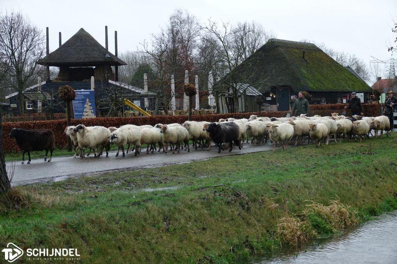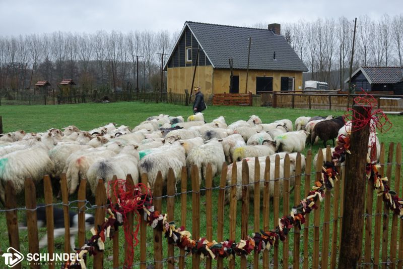 schapenintochtSchijndel - Op zondagochtend 6 februari zijn 72 drachtige ooien naar de Schaapskooi gebracht. Ze liepen in de regen en wind de volgende route: Hoeves, Veghelsedijk, Broekkant, Kerkstraat en van Vroonhovenstraat om zo rond half 11 bij de Schaapskooi op Martemanshurk aan te komen. Daar werden ze feestelijk onthaald. Nu maar wachten op de geboorte van de eerste lammetjes. Helaas vanwege het slechte weer stond er helaas nauwelijks publiek langs de weg, maar TVSchijndel was er bij en maakte een mooie reportage. Meer foto's ziet u in ons fotoboek.