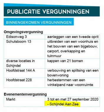 SAZLaFuente27072019nr1Schijndel - De organisatie van Schijndel aan Zee heeft een evenementenvergunning aangevraagd voor een editie eind 2020 op de Markt. De data bij de gemeentelijke publicaties staat op 3 tot en met 27 september. Dat betekent dat het een verlate editie zal worden, eigenlijk zou Schijndel aan Zee na de kermis plaatsvinden, in juli en augustus. Of de verlate 2020 editie doorgaat is nog niet bekend. De vergunning is alleen nog maar aangevraagd en nog niet verleend. Binnen een paar weken moet daar duidelijkheid over zijn. Op 19 juni plaatste de organisatie al een bericht op de Facebookpagina waarin een latere en/of andere vorm werd aangekondigd.