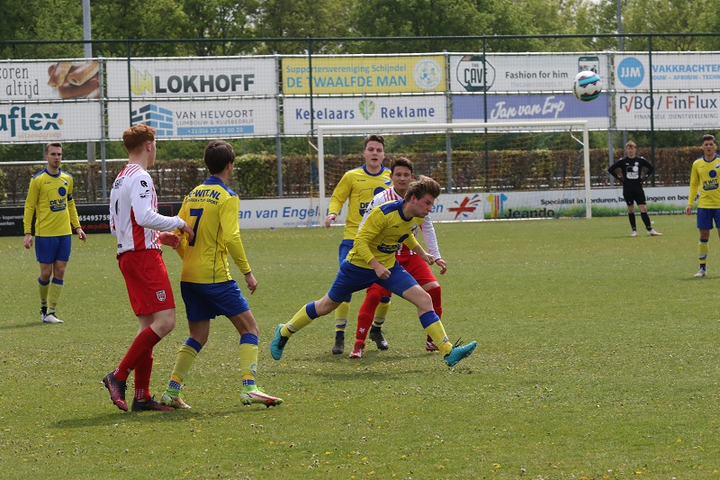 Schijndeldewit1meiSchijndel- Schijndel/DeWit heeft een belangrijke overwinning behaalt op BMC maar gemakkelijk ging het niet. Door blessures is het elftal op verschillende posities gewijzigd, maar het gehele elftal heeft zich van de goede kant laten zien tegen een weer sterk verdedigende tegenstander. Reeds na 2 minuten een prima aanval maar de keeper van BMC redt met een geweldige reactie. Schijndel/DeWit blijft druk zetten op de verdediging maar zonder resultaat. Ook een prima genomen corner levert geen doelpunt op. De druk van de thuisclub wordt steeds groter maar het resultaat blijft uit.