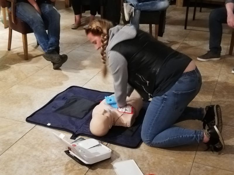 aedSchijndel- Voor de veiligheid en gezondheid van de inwoners van Schijndel is het belangrijk dat, als iemand een hartstilstand krijgt, er binnen 6 minuten een AED en voldoende burgerhulpverleners ter plekke zijn. Dat hebben veel particulieren, stichtingen, verenigingen en bedrijven samen met de Stichting Schijndel Hartsave (SSH), wijk- en dorpsraden en de gemeente Meierijstad voor elkaar gekregen. Jaarlijks worden in Nederland ongeveer 17.000 mensen getroffen door een hartstilstand buiten het ziekenhuis. De eerste zes minuten zijn daarbij van levensbelang. Wordt er in die minuten een AED gebruikt, dan stijgt de overlevingskans volgens de landelijke Hartstichting naar bijna 25%. (foto: Marion van Oers: Oefenen van borstcompressie en het gebruik van een AED tijdens de reanimatiecursus)