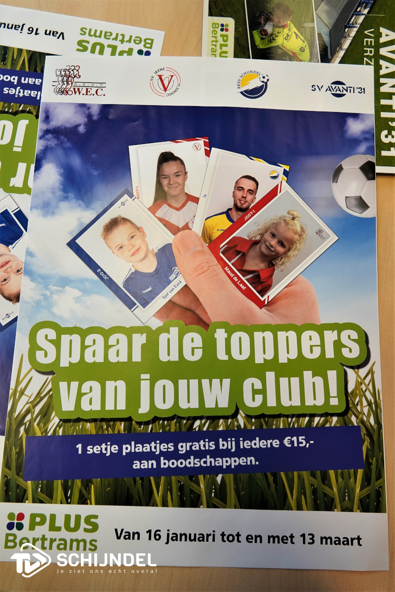 Schijndel - Vandaag start bij Plus Bertrams de spaaractie voor voetbalplaatjes. Bij elke €15 aan boodschappen krijgt u een setje plaatjes. Helaas kon Plus Bertrams in verband met corona de uitreiking van de eerste boeken niet groots vieren. Wel waren gisteren alle clubcoördinatoren / voorzitters uitgenodigd in de winkel om aan hen het eerste exemplaar te overhandigen. Er doen vier voetbalclubs aan mee, te weten: RKSV Schijndel, VV Irene (gemonde), SV Avanti ’31 en RKSV W.E.C.  De actie loopt van zondag 16 januari tot en met 13 maart. TVSchijndel ging naar de PLUS en had een interview over deze mooie spaaractie met Joey en Lysanne Bertrams. In het fotoboek een beeldverslag van de uitreiking.