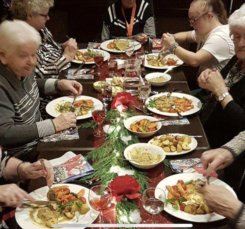 sponsordiner1Schijndel - Afgelopen vrijdagavond 3 januari werd voor de vijfde keer een diner verzorgd voor (kwetsbare) ouderen in het mooi aangeklede dorpscentrum De Schakel. De werkgroep van Dorpsraad Wijbosch had 42 mensen uitgenodigd en op enkele zieken na was iedereen aanwezig. Na het welkomstwoord begon het jonge koortje Enjoy te zingen voor het gezelschap. Hierdoor was jong en oud er voor elkaar, men genoot zichtbaar van hun vrolijke keeltjes. Ondertussen genoot men van het voorgerecht. Enkele leden van de werkgroep waren als gastvrouwen onder de mensen om een praatje te maken.