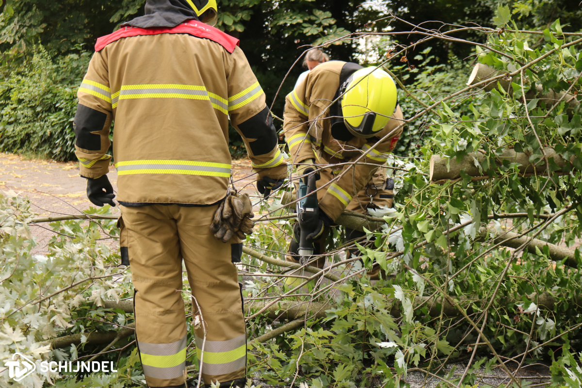 boomkruising 5Schijndel - Storm Poly trok woensdagochtend over het land en ook in Schijndel moest een boom het afleggen tegen de wind. Rond half tien werd de brandweer opgeroepen voor stormschade aan de Johannis Groenewaltstraat. Een grote oude boom was daar over de kruising gevallen.