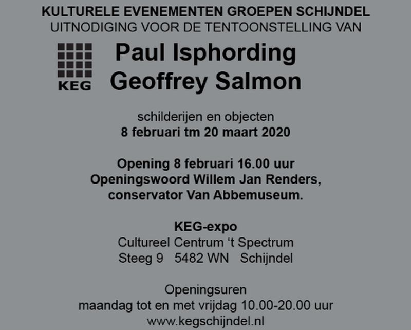 paul isphording1Schijndel - In de Keg expo is de tentoonstelling met werk van Paul Isphording en Geoffrey Salmon verlengd tot en met 8 mei. De expositie met schilderijen en objecten geeft een heel bijzondere interpretatie, van beide kunstenaars, op het landschap. De tentoonstelling is verlengd en te zien tijdens de openingsuren van Cultureel Centrum ’t Spectrum in Schijndel. Paul Isphording: “Ik ga altijd uit van iets wat ik heb waargenomen in het landschap, een herinnering waar ik mee aan de slag ga. Maar tegelijkertijd wil ik niet alleen de sfeer van het landschap verbeelden maar ook een sterk abstract schilderij neerzetten”. Een van de schilderijen is geïnspireerd door het werk van Hans van Hoek, dat Paul in zijn jongere jaren in het Van Abbe-museum zag hangen. Het waren schilderijen over de Peel; diepe, donkere, bewerkte schilderijen met zwarte waters en donkere boompartijen.