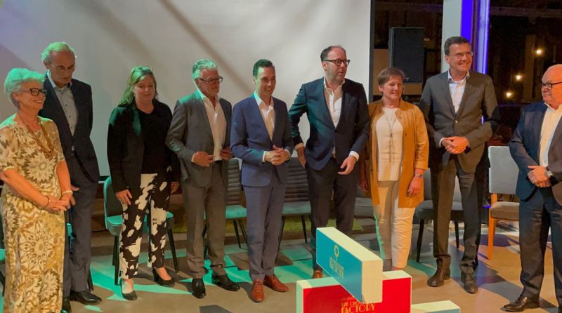 chocolatefactory1Meierijstad - De voorbereiding voor de realisatie van The Chocolate Factory (TCF) in de NPF Toren op de Noordkade in Veghel kan van start! Samen met initiatiefnemer Stichting Werk en Leren hebben Noordkade Ontwikkeling (Van de Ven), gemeente en provincie de afgelopen maanden gewerkt aan de opzet voor de organisatie en de financiële constructie. Met een lening van de provincie, een eerder toegekende Europese subsidie van €2,4 miljoen,  bijdragen van de gemeente en een aantal ondernemers en onderwijspartners in Meierijstad, kan de initiatiefnemer de unieke leerwerkomgeving nu echt gaan realiseren. Op 17 mei vond de symbolische eerste handeling plaats. Gedeputeerden Van Gruijthuijsen en Smeulders, initiatiefnemer Henk Maas, wethouders Coby van der Pas en Jan Goijaarts, Stefan van de Ven (Noordkade ontwikkeling), Peer van Summeren en Anita O‘Connor (van respectievelijk Leijgraaf en VO Veghel) en Trinette Stolle en Eus de Haas (van respectievelijk Friesland Campina en Vinci Energies) legden de eerste (chocolade)stenen. Ook de betrokken partners uit het onderwijs, het bedrijfsleven, Circular Food Center en ontwikkelaar van de Ven en waren aanwezig om dit mee te vieren.