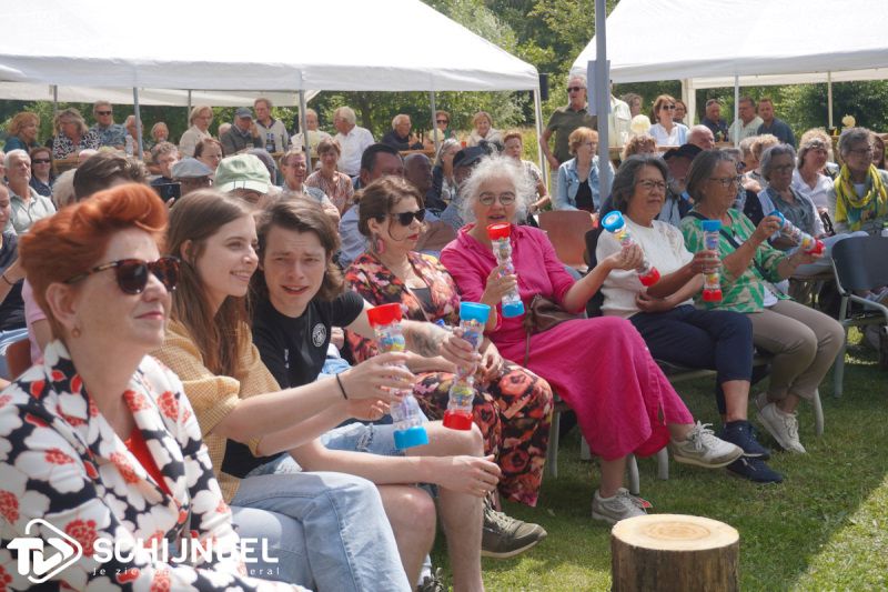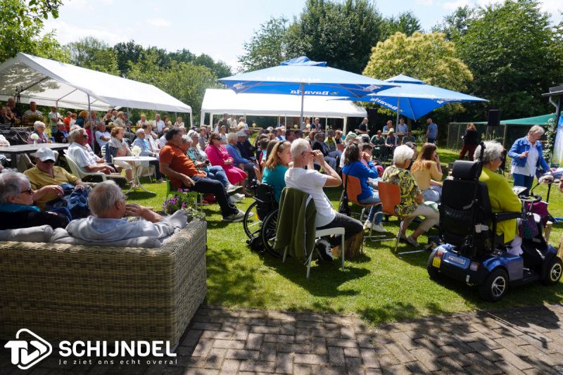 Op een vol terras in de tuin was het gezellig druk en genoot men van de heerlijke muziek uit de jaren 90 onder leiding van dirigente Margré van Gestel. En voor de kinderen had men een luchtkussen geplaatst zodat ook zij zich konden vermaken. Meer foto's zie je in ons fotoboek.