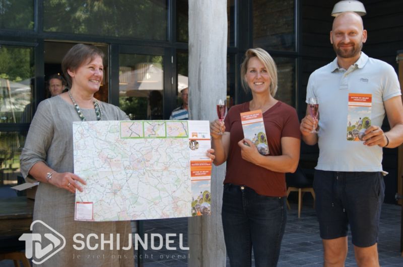 uitreikingfietsknooppuntenkaart8Meierijstad - Vanaf 30 juni krijgen alle inwoners van de gemeente Meierijstad een fietsknooppuntenkaart van Meierijstad huis aan huis bezorgd. Woensdag mochten de eigenaren van camping Het Goeie Leven in Eerde, Anke en Johan van Esdonk, het eerste exemplaar in ontvangst nemen uit handen van wethouder Coby van der Pas. De kaart is ontwikkeld in samenspraak met het platform ‘Gastvrij Meierijstad’. Ook de recreatief-toeristische ondernemers op het gebied van verblijfs- en dagrecreatie inclusief horeca staan erop vermeld. Naast de huis-aan-huisverspreiding is de gratis kaart verkrijgbaar bij alle deelnemende recreatieve ondernemers en organisaties, de VVV’s in Schijndel en Sint-Oedenrode en het UITpunt in Veghel. Zie voor meer foto's het fotoboek