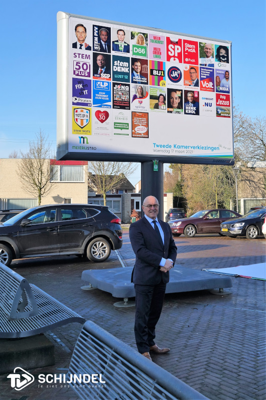Meierijstad - Op 17 maart vinden de Tweede Kamerverkiezingen plaats. Vandaag 19 februari is door burgemeester van Rooij het startsein gegeven voor de verkiezingscampagne in Meierijstad. In Eerde onthulde hij de eerste Trotter (digitaal billboard) met daarop de landelijke politieke partijen die meedoen met de Tweede Kamerverkiezingen. Deze Trotter vervangt het ‘oude’ aanplakbord. In Meierijstad staan straks 20 van dergelijke Trotters.