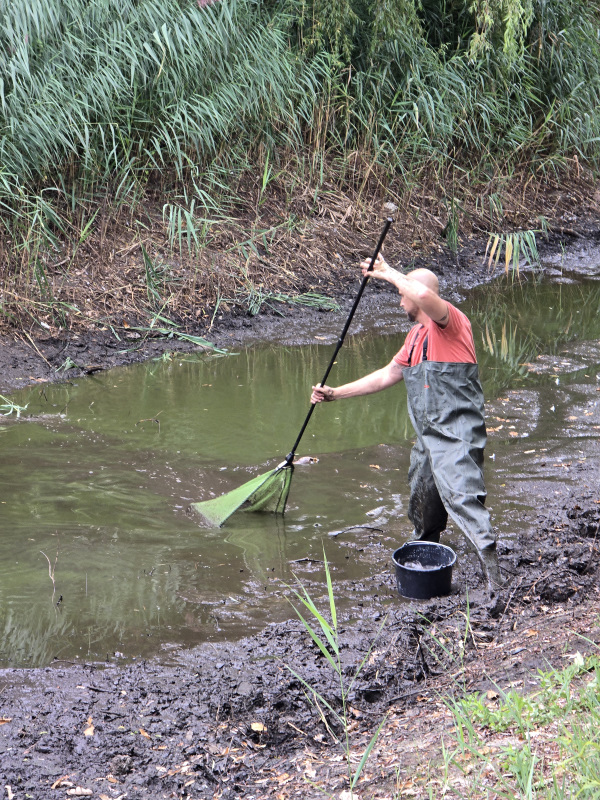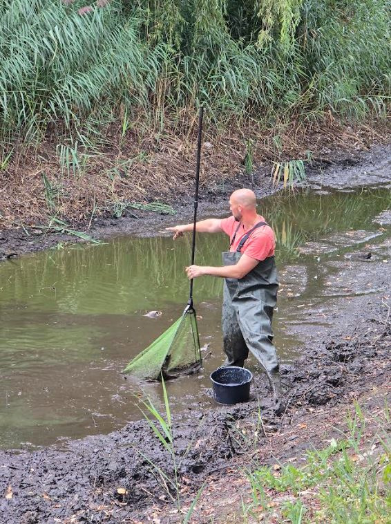 Buurtbewoner Tim, zijn vrouw en dochter hebben geprobeerd zoveel mogelijk vissen over te zetten naar de grote gracht. Ze hebben op deze manier het leven van meer dan honderd vissen gered.
