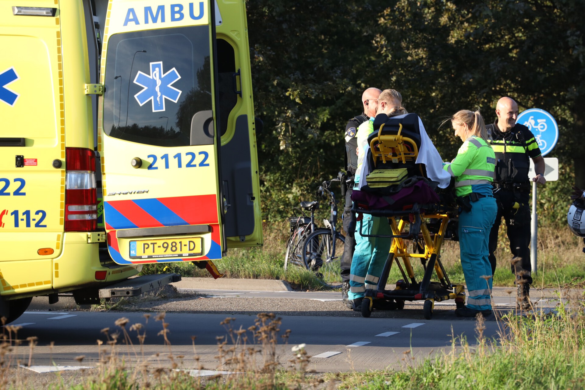 eerdsebaan4Schijndel - Zondagmiddag vond rond 17.20 uur een verkeersongeval plaats op de Eerdsebaan in Schijndel. Op de rotonde bij de Nieuwe Eerdsebaan en de Edisonweg raakte een vrouw gewond. Zij kwam vermoedelijk ten val met haar fiets. Omstanders schoten te hulp, de vrouw werd vervolgens met een ambulance overgebracht naar het ziekenhuis. Het is ons onbekend wat voor verwondingen zij door het ongeval opliep. Naast een ambulance kwam ook de politie ter plaatse. Een deel van de rijbaan was tijdelijk afgesloten maar het verkeer kon om de hulpverleningsvoertuigen heen. Foto's en info: Persburo Sander van Gils