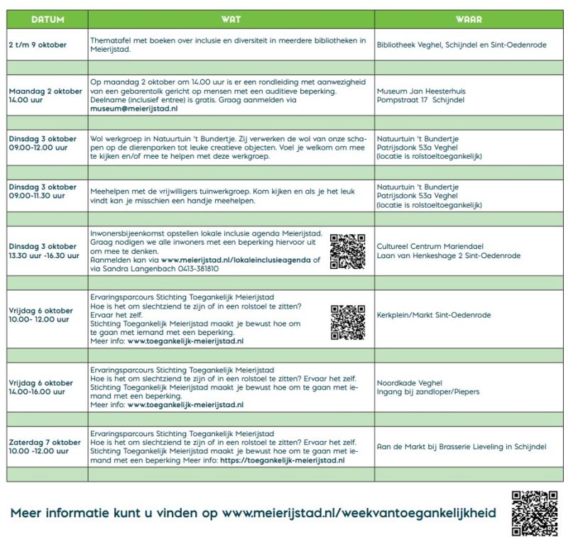 Om iedereen hierover na te laten denken en soms zelf te laten ervaren heeft de gemeente  van 2 tot en met 9 oktober activiteiten georganiseerd. De activiteiten zijn allemaal GRATIS en vinden verspreid over heel Meierijstad plaats. Deze activiteiten zijn leuk, leerzaam, interessant en geven stof tot nadenken. Doe je ook mee?